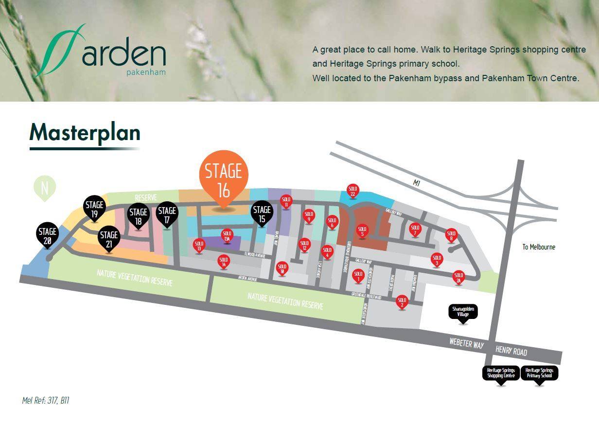 Arden has life’s conveniences at your door – from nearby primary and secondary schools, child care facilities, a shopping centre adjacent to the address, sports and recreational facilities to Pakenham’s fast - growing town precinct and landscaped parks – you’ll find everything you need so close to home. Easy freeway access from the new Pakenham bypass and nearby public transport allows for convenient travel to Melbourne’s CBD, Fountain Gate Shopping Centre and Berwick for a variety of speciality stores, cafes, restaurants, schools, TAFE and Monash University.